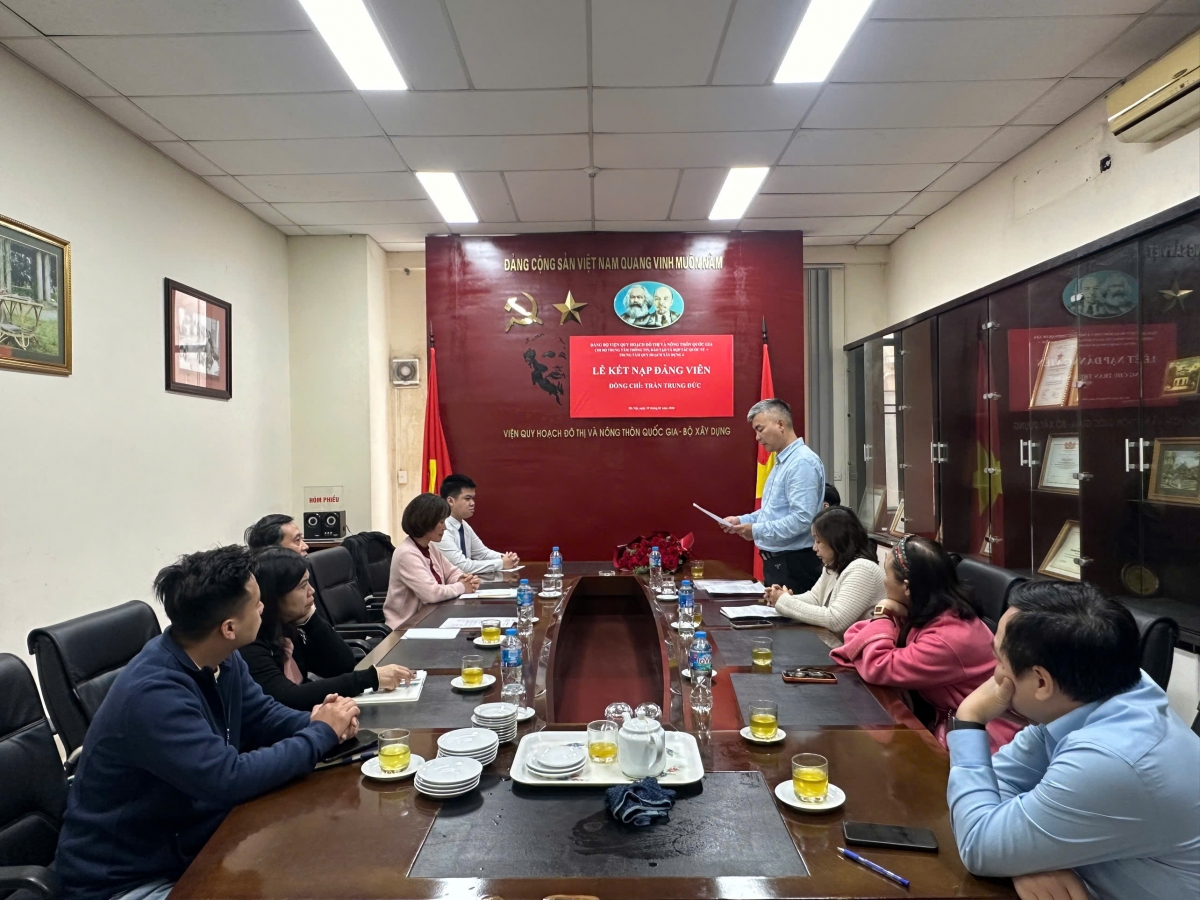 Nhân dịp này, đồng chí Bí thư Đảng ủy Hoàng Vĩnh Hưng chúc mừng đồng chí đảng viên mới Trần Trung Đức được đứng trong hàng ngũ của Đảng sau một quá trình nỗ lực phấn đấu. Đồng chí Bí thư Đảng ủy mong rằng đồng chí Trần Trung Đức thực hiện tốt những lời tuyên thệ, tiếp tục phát huy tốt hơn nữa vai trò tiên phong gương mẫu của người đảng viên trong công tác được giao, tu dưỡng rèn luyện phẩm chất chính trị, đạo đức, lối sống để trở thành đảng viên chính thức. Đồng chí Hoàng Vĩnh Hưng đánh giá trong thời gian qua Chi bộ Trung tâm Thông tin, Đào tạo và HTQT + Trung tâm Quy hoạch Xây dựng 4 làm tốt công tác phát triển đảng với đội ngũ cán bộ trẻ Trung tâm Quy hoạch Xây dựng 4 làm nòng cốt tạo nguồn cho chi bộ. Đồng chí Bí thư đề nghị Chi bộ tiếp tục giúp đỡ để kết nạp các quần chúng ưu tú của Trung tâm Quy hoạch Xây dựng 4 đảm bảo đáp ứng đủ điều kiện để tách riêng thành chi bộ độc lập. Bí thư Đảng ủy Hoàng Vĩnh Hưng mong toàn thể đảng viên đoàn kết xây dựng chi bộ Trung tâm Thông tin, Đào tạo và HTQT + Trung tâm Quy hoạch Xây dựng 4 trở thành chi bộ vững mạnh của đảng bộ VIUP.
