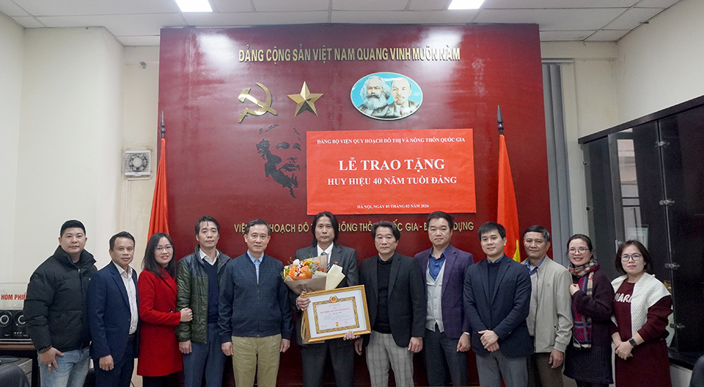 Ngày 03/02/2026, nhân dịp kỷ niệm 96 năm ngày thành lập Đảng Cộng sản Việt Nam (3/2/1930 -3/2/2026), Đảng bộ Viện Quy hoạch đô thị và nông thôn quốc gia (VIUP) tổ chức Lễ trao tặng Huy hiệu 40 năm tuổi Đảng cho đồng chí Hồ Sao Mai - đảng viên thuộc chi bộ Tổ chức - Hành chính. Dự buổi lễ có đồng chí Hoàng Vĩnh Hưng, Bí thư đảng ủy– Viện trưởng VIUP, các đồng chí trong đảng ủy Viện và các đảng viên trong chi bộ.