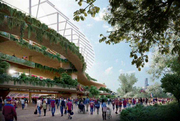 Hình ảnh phối cảnh kỹ thuật số của sân vận động vừa được công bố vào đầu tháng 1 này ngay sau khi chính quyền bang Queensland thông báo đơn vị chiến thắng trong cuộc thi thiết kế quốc tế.