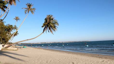 Biển xanh, cát trắng cùng những rặng dừa hơn 100 năm tuổi bên biển Mũi Né. (Ảnh: TTXVN)