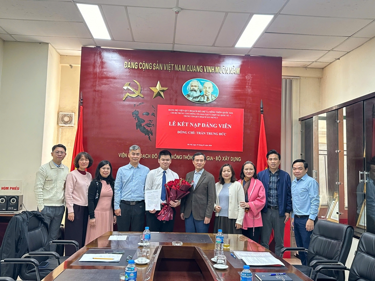Nhân dịp này, đồng chí Bí thư Đảng ủy Hoàng Vĩnh Hưng chúc mừng đồng chí đảng viên mới Trần Trung Đức được đứng trong hàng ngũ của Đảng sau một quá trình nỗ lực phấn đấu. Đồng chí Bí thư Đảng ủy mong rằng đồng chí Trần Trung Đức thực hiện tốt những lời tuyên thệ, tiếp tục phát huy tốt hơn nữa vai trò tiên phong gương mẫu của người đảng viên trong công tác được giao, tu dưỡng rèn luyện phẩm chất chính trị, đạo đức, lối sống để trở thành đảng viên chính thức. Đồng chí Hoàng Vĩnh Hưng đánh giá trong thời gian qua Chi bộ Trung tâm Thông tin, Đào tạo và HTQT + Trung tâm Quy hoạch Xây dựng 4 làm tốt công tác phát triển đảng với đội ngũ cán bộ trẻ Trung tâm Quy hoạch Xây dựng 4 làm nòng cốt tạo nguồn cho chi bộ. Đồng chí Bí thư đề nghị Chi bộ tiếp tục giúp đỡ để kết nạp các quần chúng ưu tú của Trung tâm Quy hoạch Xây dựng 4 đảm bảo đáp ứng đủ điều kiện để tách riêng thành chi bộ độc lập. Bí thư Đảng ủy Hoàng Vĩnh Hưng mong toàn thể đảng viên đoàn kết xây dựng chi bộ Trung tâm Thông tin, Đào tạo và HTQT + Trung tâm Quy hoạch Xây dựng 4 trở thành chi bộ vững mạnh của đảng bộ VIUP.